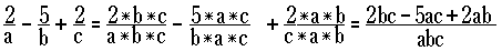 Wenn mehr als zwei Brüche addiert oder subtrahiert werden sollen, so muß jeder Bruch mit den Nennern aller anderen Brüche erweitert werden. Z.B.:
