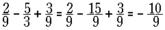 Hier reicht es, den zweiten Bruch mit 3 zu erweitern, denn dann haben alle Brüche den gleichen Nenner.